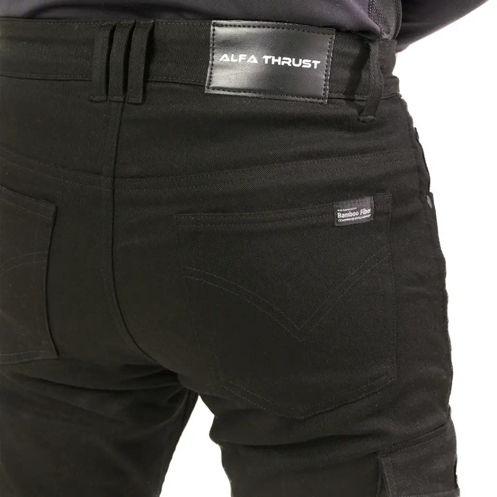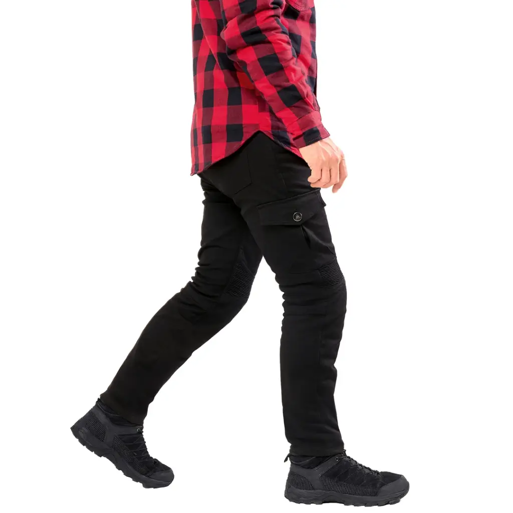 Regularny, prosty krój nogawki łączy luźny fit z wyprofilowaną sylwetką. Idealny do noszenia z butami motocyklowymi. Elastyczność spandexu zapewnia swobodę ruchów bez obcisłości.