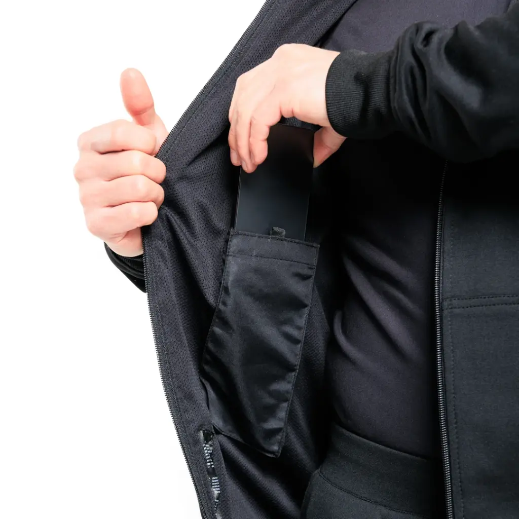 Termoizolacyjna podszewka utrzymuje ciepło w chłodne dni. Pełna podszewka micro mesh zapewnia oddychalność i zarządzanie wilgocią w ciepłe. Jedna bluza – cały rok.